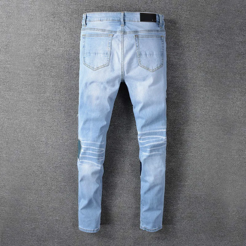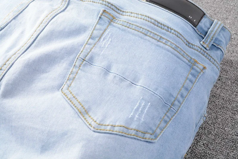 Светильник-голубые уличные рваные джинсы мужские мотоциклетные брюк...