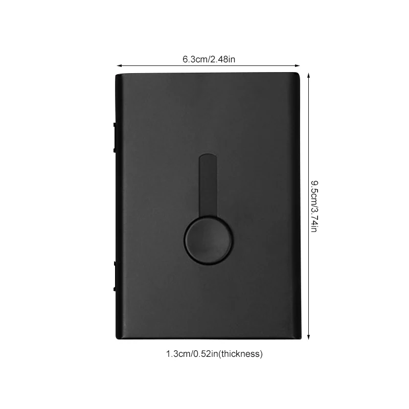 1. Большой объем: чехол для визитных карточек Вмещает около 13-18 визиток, в зависимости от толщины визитных карточек.2. Простота использования: в коробке встроенная кнопка, для запуска визитной карточки нажимается кнопка. Удобно и быстро запускать визитную карточку за раз.3. Высокое качество и простота: товар подходит для личного вкуса, подходит для вашего портфеля, сумочки. Произведите впечатление на своих клиентов, коллег или предпринимателей.4. Идеально защищает визитную карточку: продукт защищает визитную карточку от любых повреждений и сохраняет визитную карточку в идеальном состоянии.5. Удобно носить с собой: продукт небольшого размера, Не громоздкий и удобный для переноски.Описание:Наименование товара: бизнес держатель для карт ручной нажимной чехол для банковских карт членская карточпосылка металлическая ультратонкая упаковка для визиток ОрганайзерМатериал: алюминийРазмер: около 9,5*6,7*1,3 см/3,74*2,64 * 0.51inВес нетто: около 37 гУпаковка: полиэтиленовый пакет + картонВес брутто: около 40 гТехнические характеристики: прибл. 13-18 визитокЦвет: красный, синий, черный, розовое золото, серый, серебристый, золотойОсобенности:1. Большой объем: чехол для визитных карточек Вмещает около 13-18 визиток, в зависимости от толщины визитных карточек.2. Простота использования: в коробке встроенная кнопка, для запуска визитной карточки нажимается кнопка. Удобно и быстро запускать визитную карточку за раз.3. Высокое качество и простота: изделие создается по индивидуальному вкусу, подходит для вашего портфеля, сумочки. Произведите впечатление на своих клиентов, коллег или предпринимателей.4. Идеально защищает визитную карточку: продукт защищает визитную карточку от любых повреждений и сохраняет ее в идеальном состоянии.5. Удобно носить с собой: продукт небольшого размера, Не громоздкий и удобный для переноски.Список: