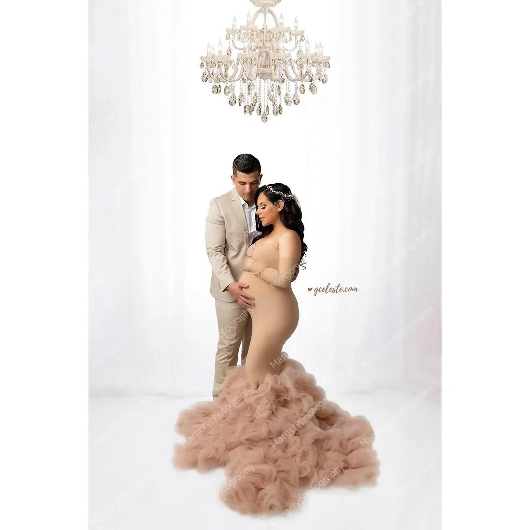 Элегантные платья для беременных с юбкой-годе без бретелек Экстра пышные тюлевые платья для беременных стрейч размера плюс