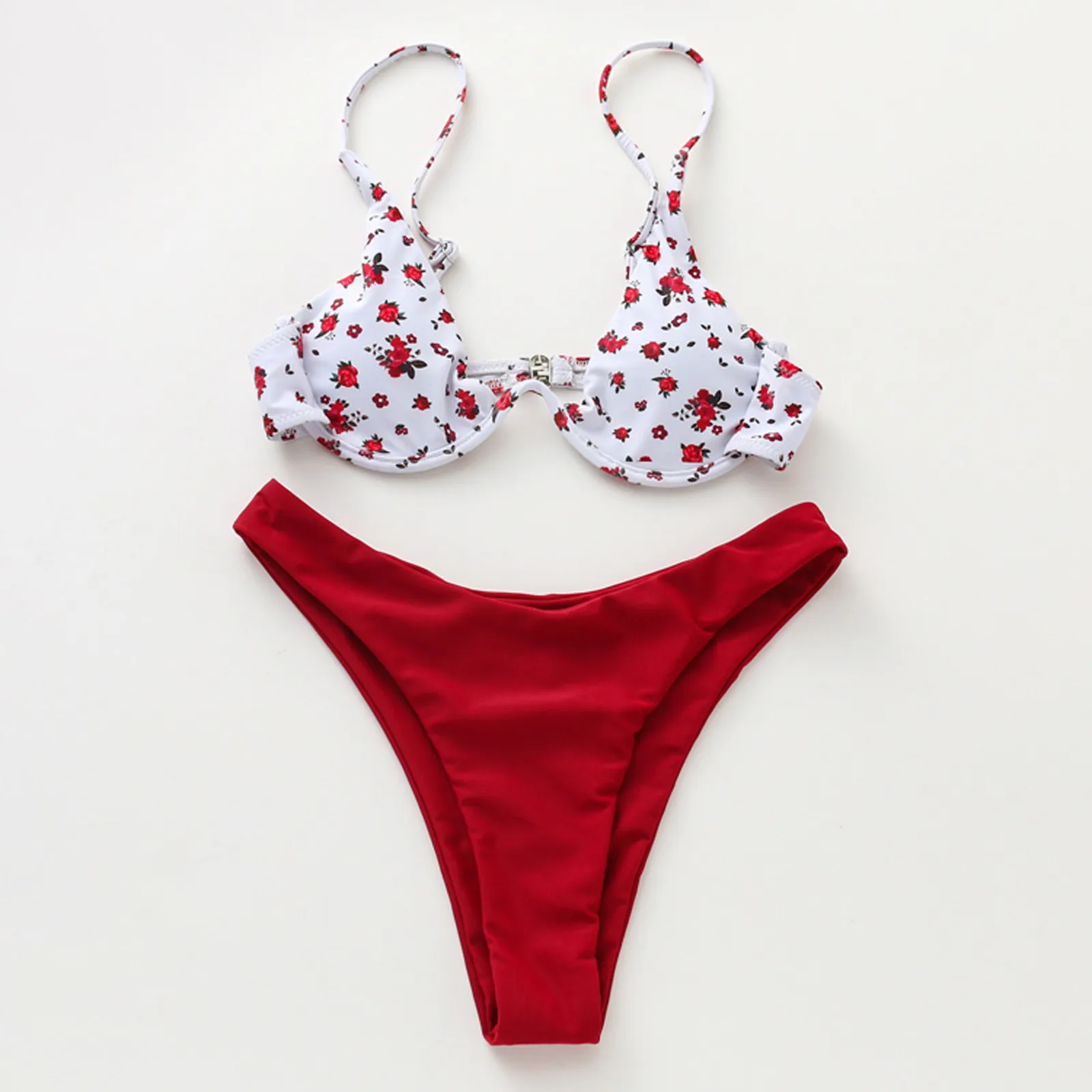 Бикини на косточках с цветочным принтом и V-образным вырезом, 2021
