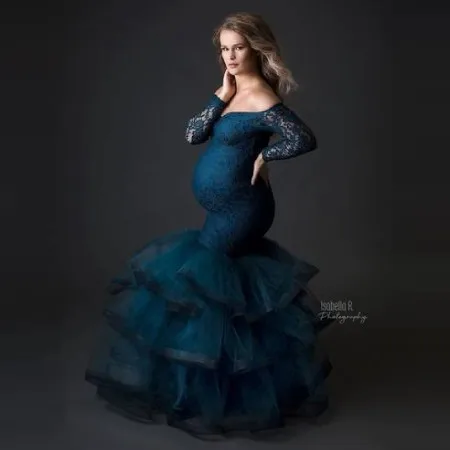 Классическая Русалочка, платья для будущих мам, одежда с длинным рукавом без бретелек, Многоярусное с оборками из тюля Свадебные Беременность фото мягкие банные халаты