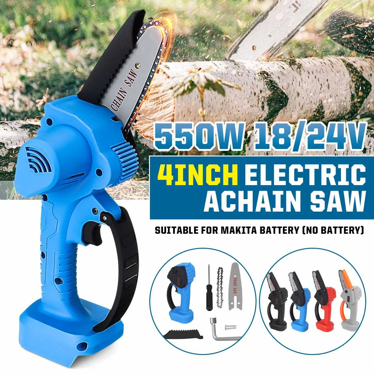 Характеристики: Мощность 550 Вт Батарея Подходит для батареи Makita 18 В/24 В (не входит в комплект) Длина направляющей 4 дюйма Скорость цепи 5 м/с Скорость вращения 3000 об/мин Материал цепи Высокоуглеродистая сталь Размер (H) 32 см/12,6 дюйма Цвет Черный, синий, красный, серыйПосылка входит: