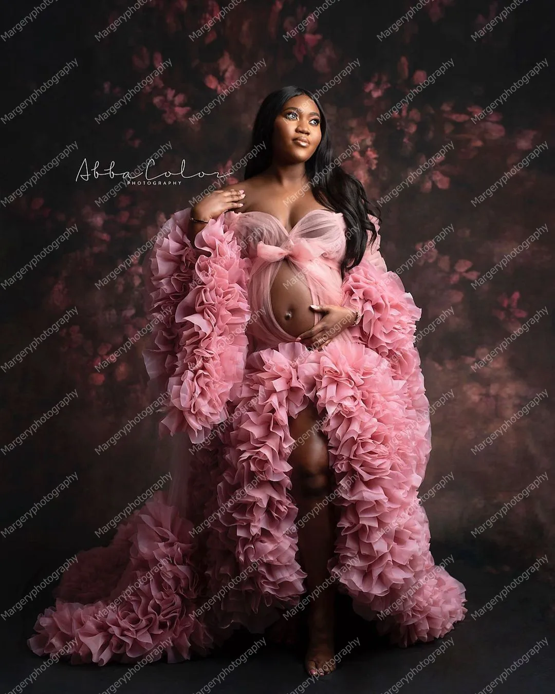 Пышное розовое Тюлевое платье для беременных женщин, длинные халаты...