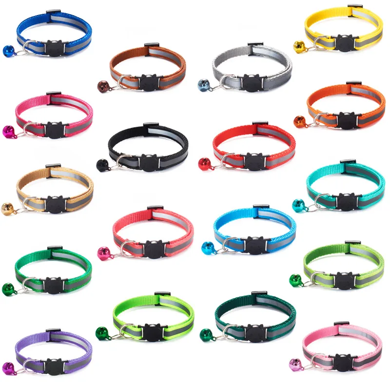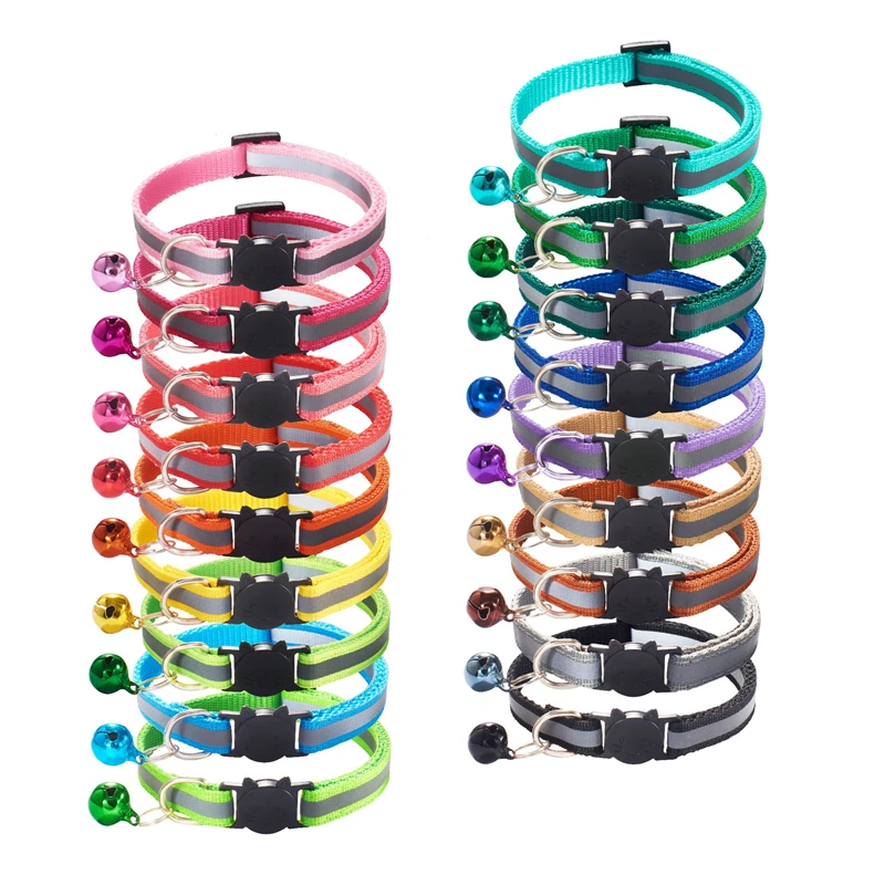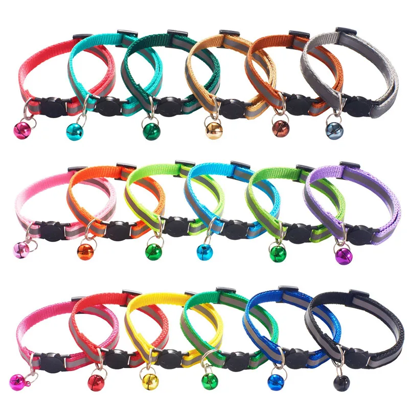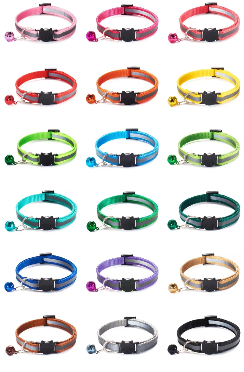 Регулируемый нейлоновый ошейник TJPBF, 18 цветов, для кошек, колокольчиков, светоотражающие Аксессуары