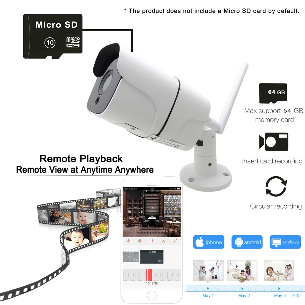 Разрешение: 720P 960P 1080P Аудио Wi-Fi IP-камера аудиозапись Объектив: Объектив 3,6 мм (2,8 и 6 мм 8 мм опционально) поддержка режима Wi-Fi и сетевого кабеля Поддержка карт Micro SD, до 64 Гб (не содержит карты Micro SD); Поддержка ONVIF, может работать со сторонвечерние видеорегистратором. Поддержка мобильного видеонаблюдения (iOS,android) Поддержка обнаружения движения и оповещения по электронной почте Поддержка ночного видения водонепроницаемый Встроенный микрофон Встроенная память динамика: Дополнительно (32 ГБ, 64 ГБ) удаленное видео в реальном времени, поддержка записи видео и звука в реальном времени