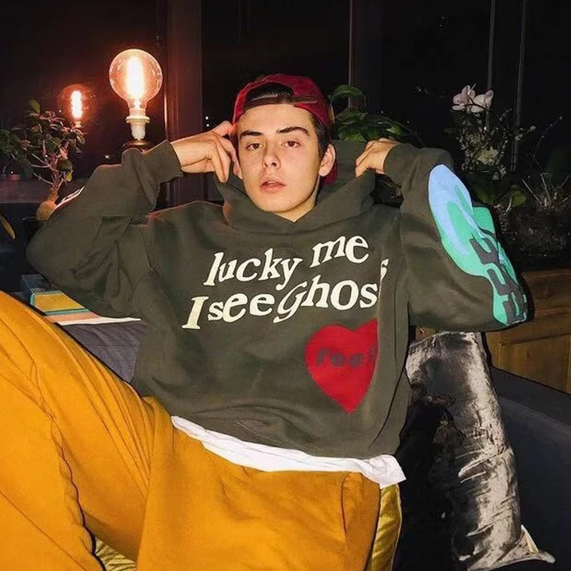 Толстовка мужская флисовая с надписью Lucky Me Kanye West, свитшот с принтом граффити, в стиле Харадзюку, топ в стиле хип-хоп, очень странные дела, худи