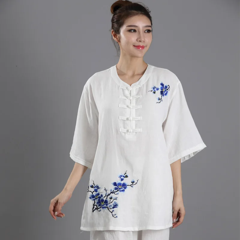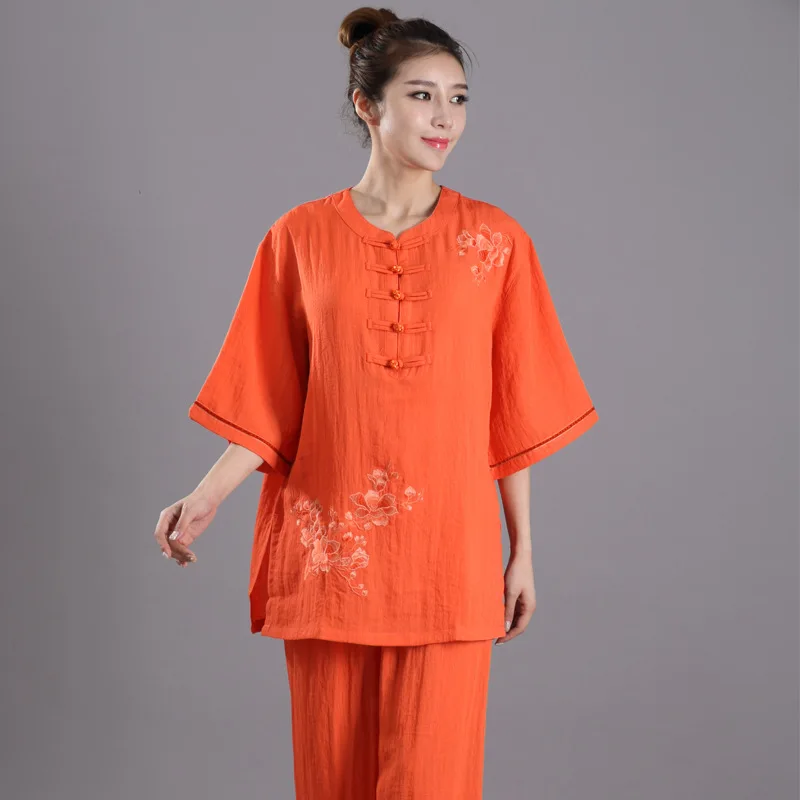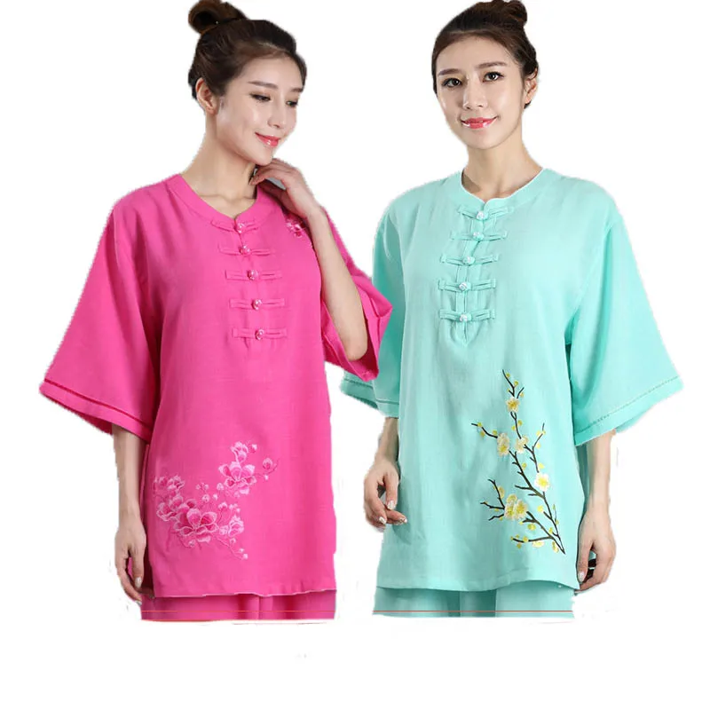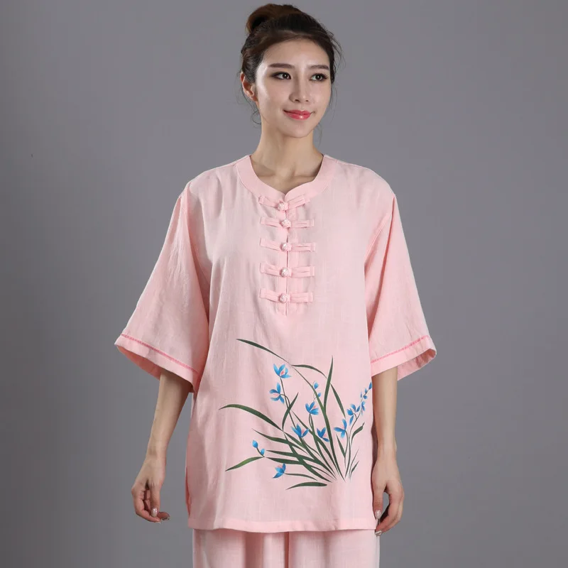 Тай Чи упражнения костюмы WomenTraditional в китайском стиле из хлопка и льна с вышивкой с длинными рукавами Ушу тайцзи форма для кунгфу костюм униформа