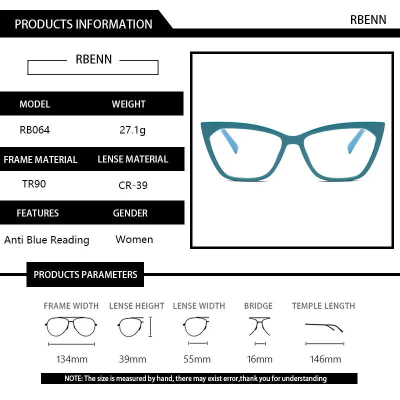 RBENN Новая Большая оправа для чтения кошачий глаз женская с защито...