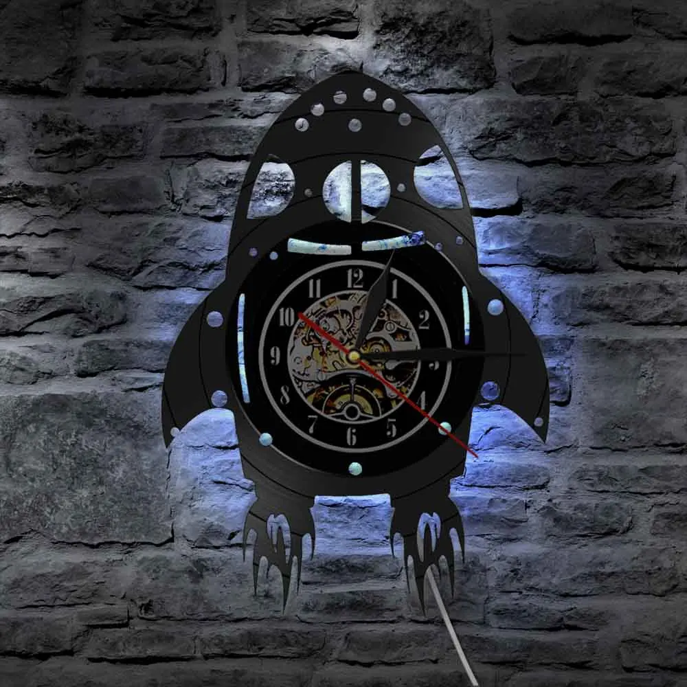 Настенные часы Rocket Ship, современный дизайн, персонализированные детские часы с космическим пространством для детей и мальчиков, детские часы