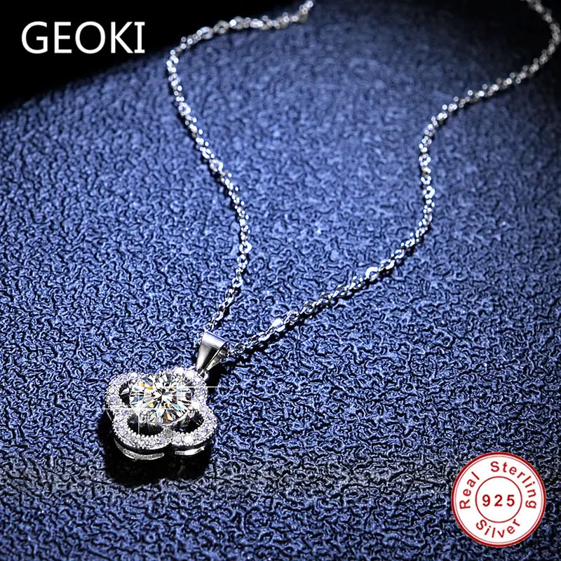 Geoki 925 стерлингового серебра 1 карат идеальный крой 4 лист формы D Цвет VVS2 Муассанит кулон ожерелье для женщин Роскошные свадебные ювелирные изделия