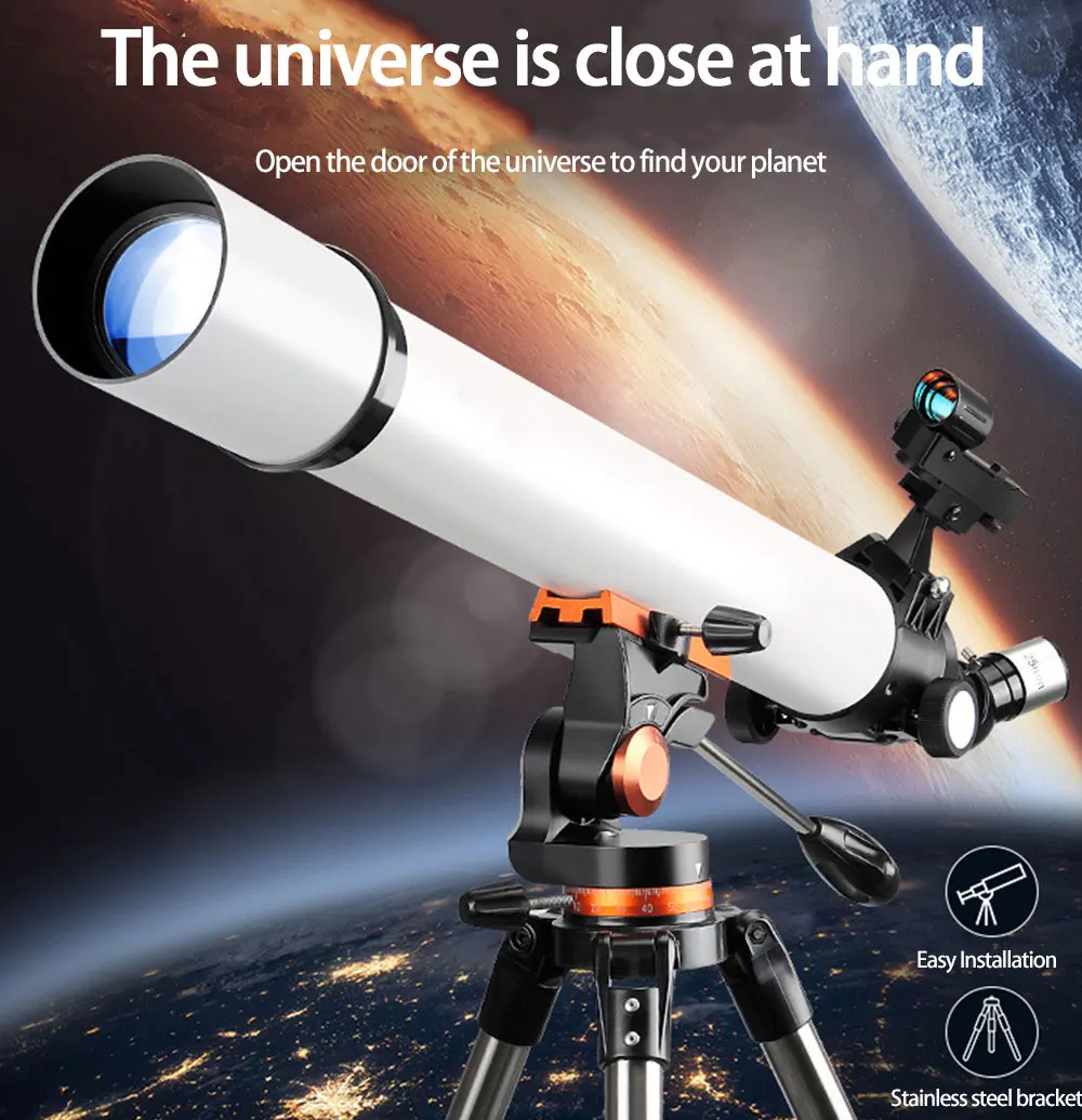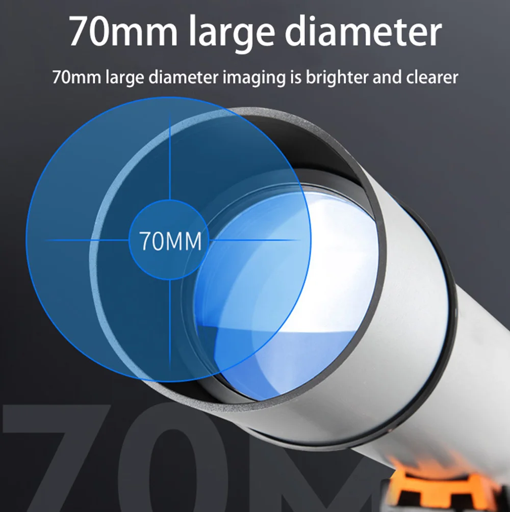 Профессиональный астрономический телескопУвеличение: 150xДиаметр объектива: 70 ммОкуляры: 20 мм, 10 ммМатериал: высококачественный алюминиевый сплав