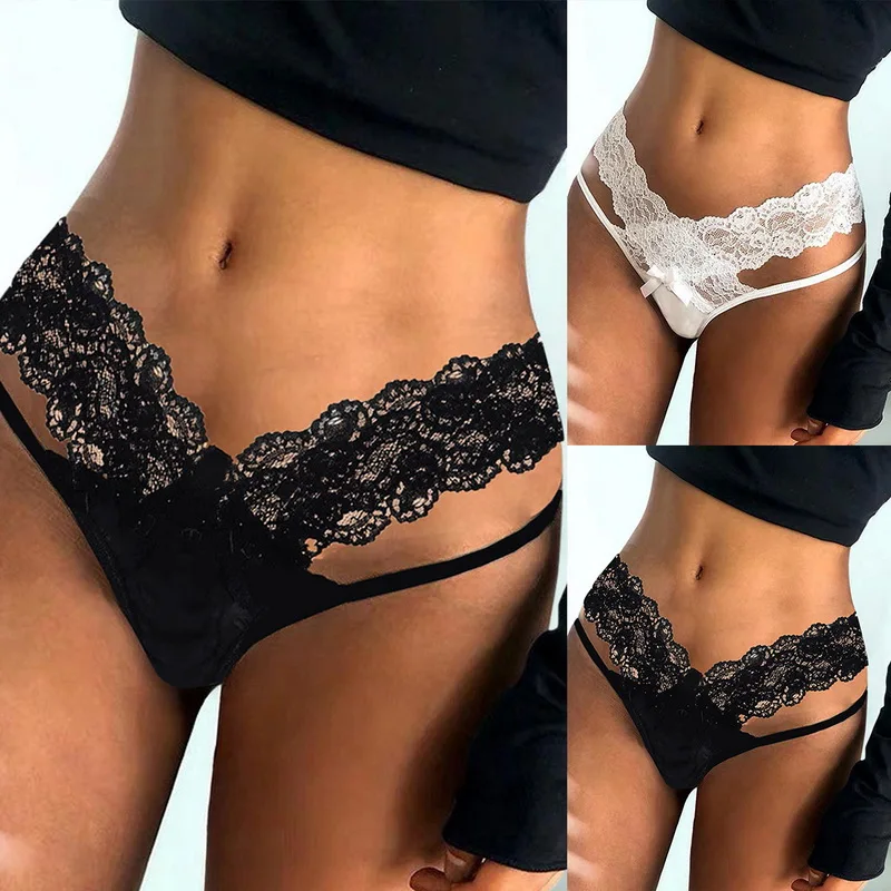 Женские сексуальные кружевные Трусики-стринги с вырезами, нижнее белье с T-образной спинкой, мягкое удобное нижнее белье с бантом, подарок Трусики