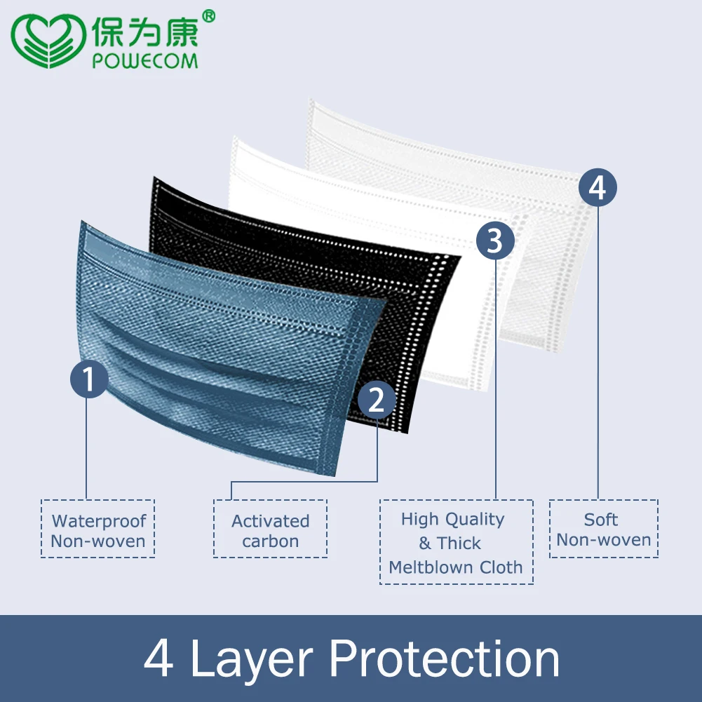 Маска одноразовая с активированным углем, 4 слоя, 10-200 шт.