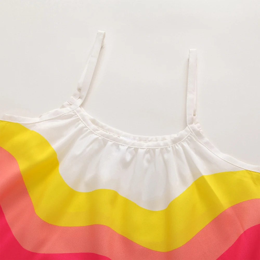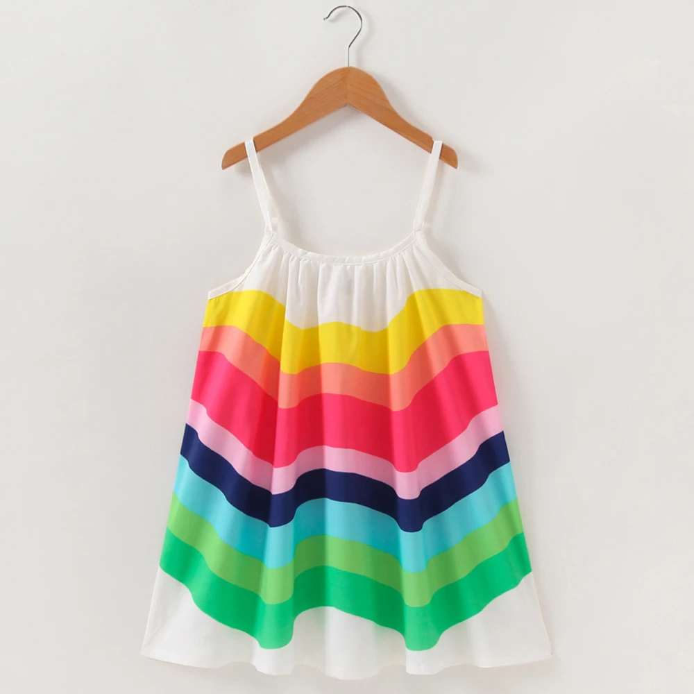Длинное платье на бретельках для девочек, летнее, Радужное