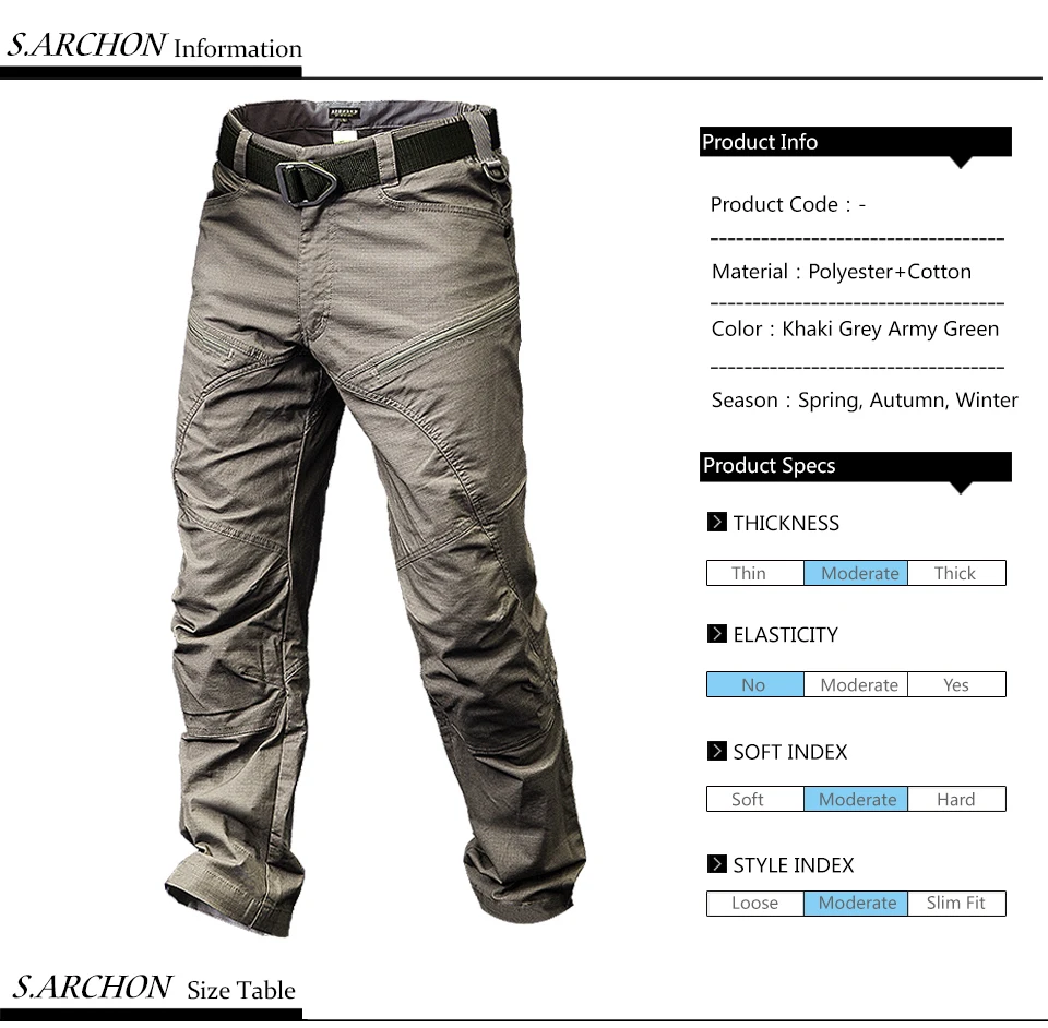 Мужские брюки-карго S.ARCHON, водонепроницаемые штаны в стиле милит...