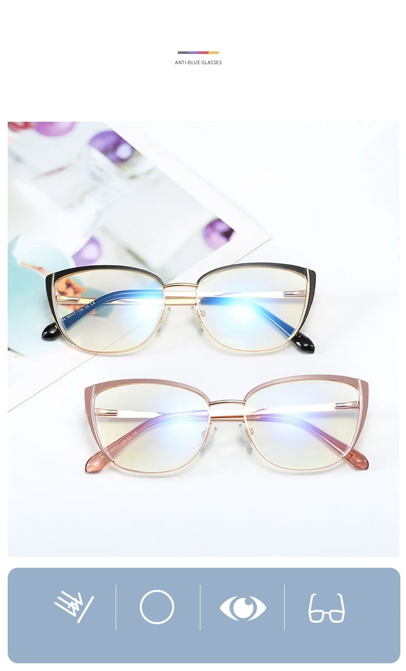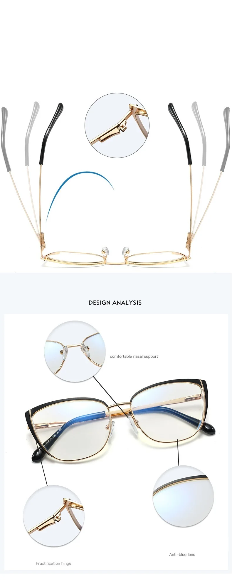 2021 Новые солнцезащитные очки "кошачий глаз" синий светильник фильтром очки Рамка Для женщин мужчин Винтаж TR90 оптический близорукости, очки в металлической оправе с прозрачными линзами черная рамка UV400