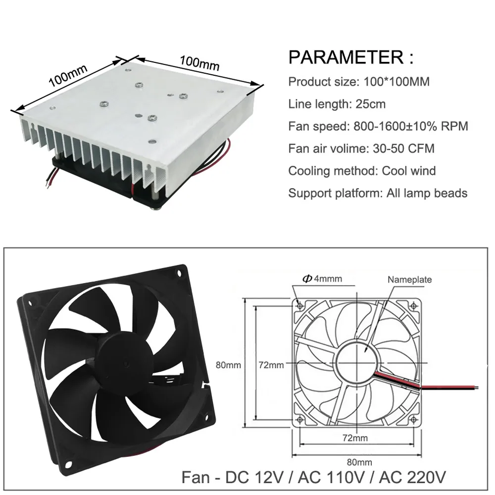 Алюминиевый радиатор с вентилятором, система охлаждения для сделай сам, светильник Вт, 30 Вт, 50 Вт