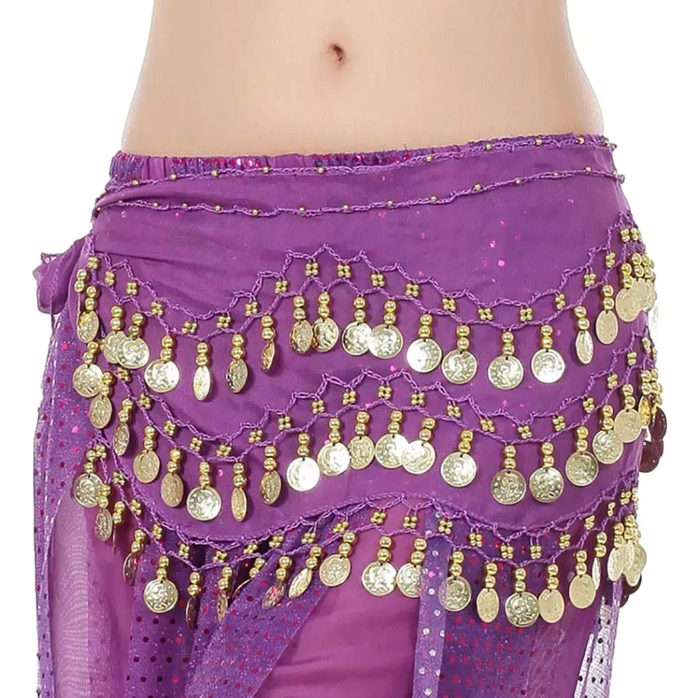 Женская юбка для танца живота, привлекательный шарф с золотыми монетами, 3 ряда, 128