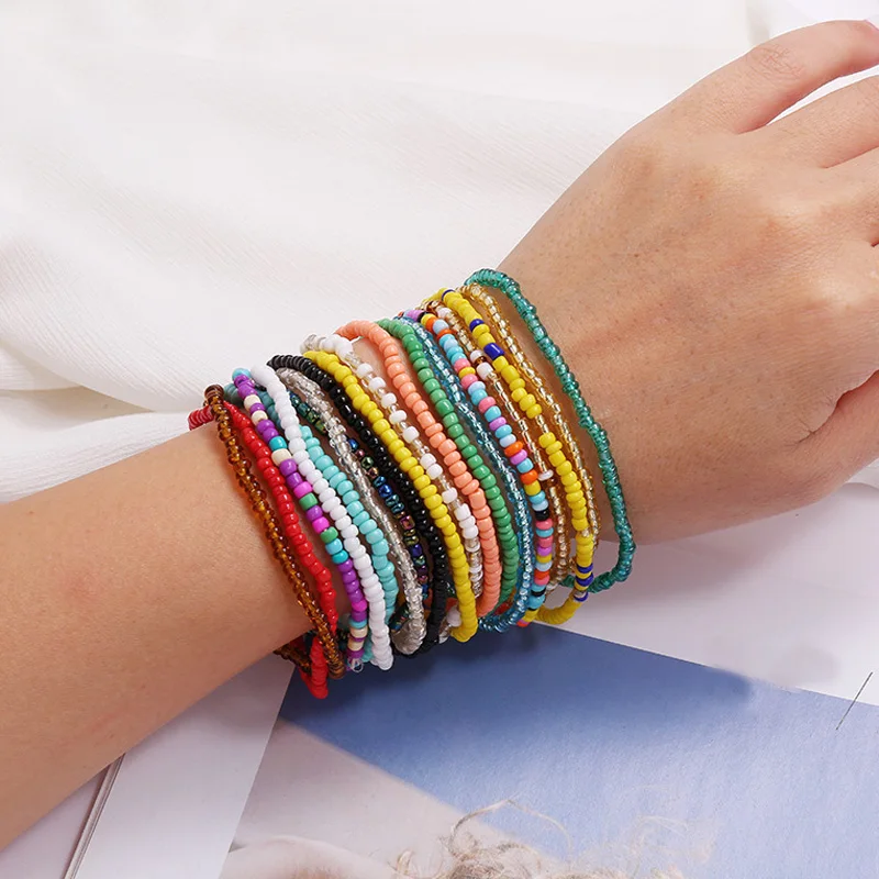 Женский браслет из бисера Wgoud, разноцветный эластичный пляжный браслет ручной работы, простой браслет ручной работы, Подарочная бижутерия