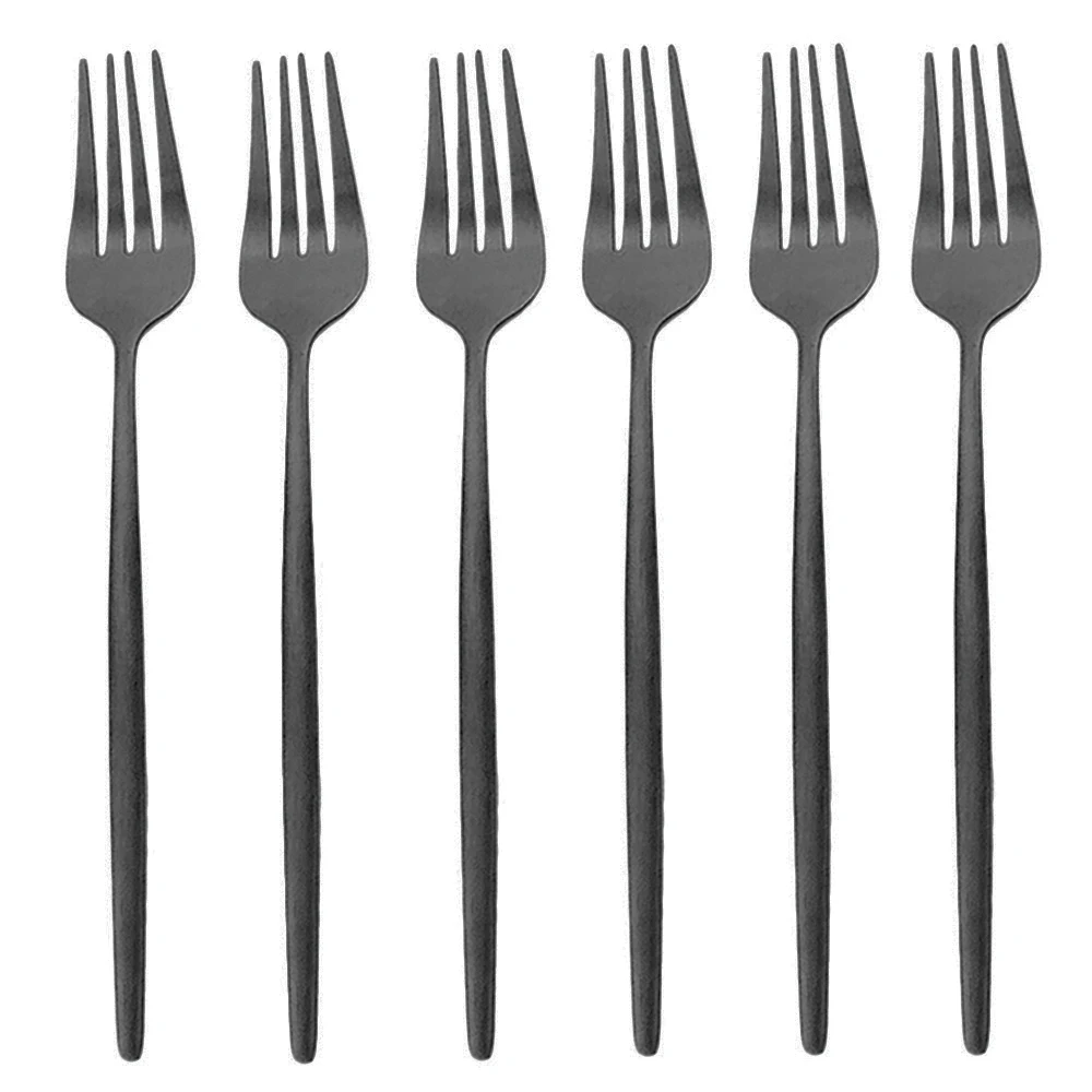 Столовые приборы из нержавеющей стали, матовая вилка черного цвета, 6 шт.