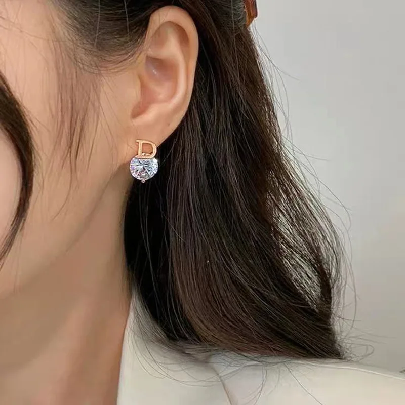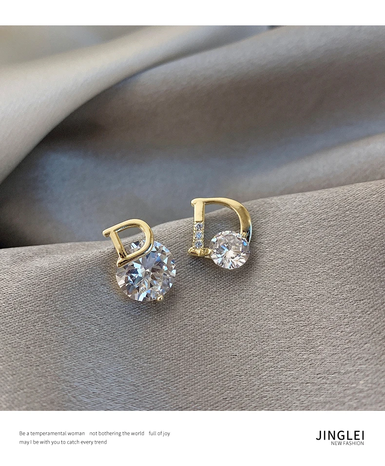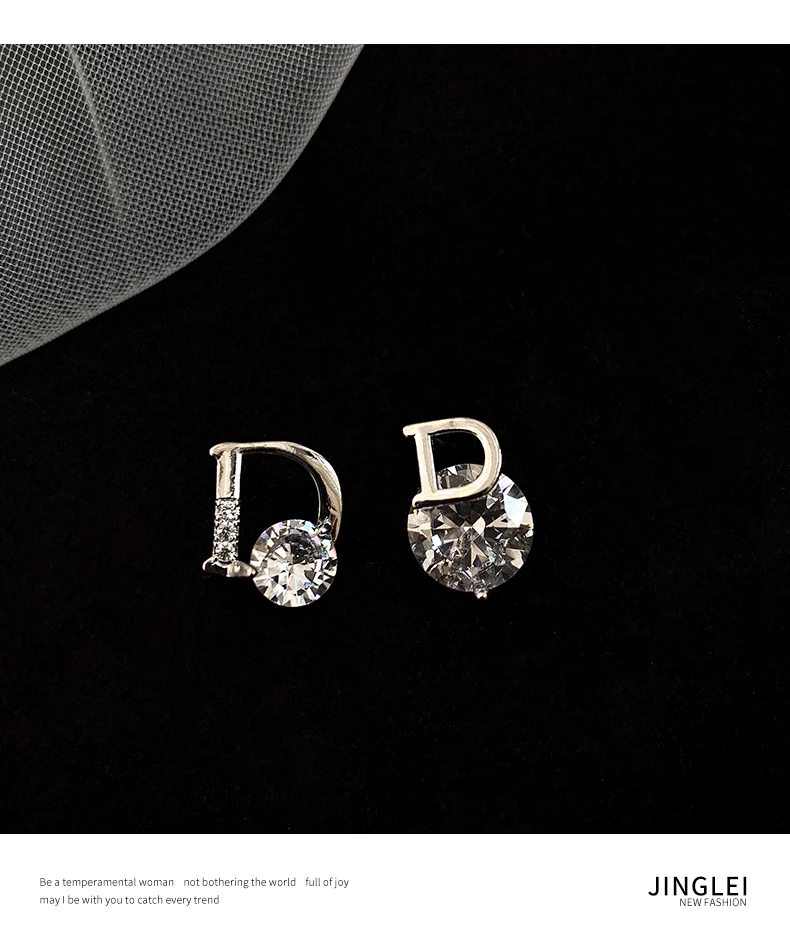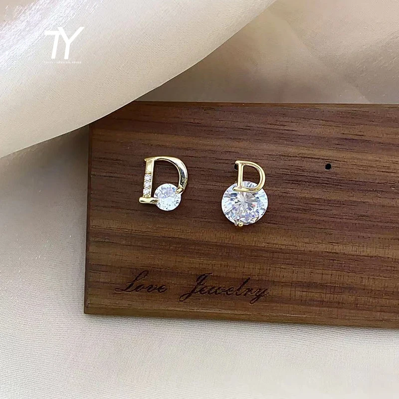 Роскошные блестящие циркониевые золотые асимметричные серьги с буквами D для женщин, новинка 2021, сексуальные необычные серьги для вечеринок для девочек