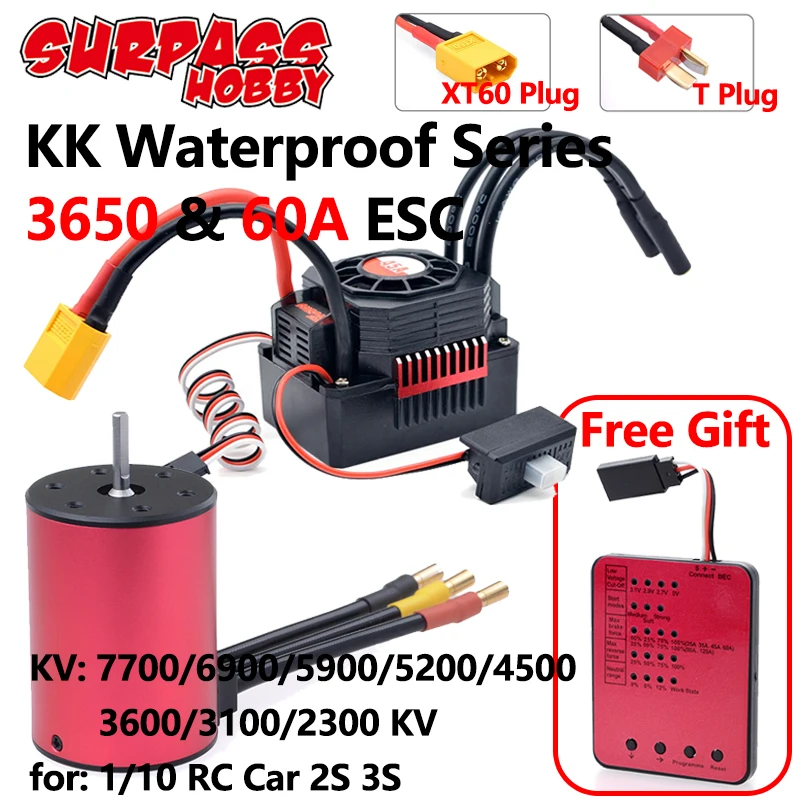 Surpass Hobby KK ESC бесщеточный двигатель 3650 23003100450052007700KV с 60A 80A ESC XT60 Plug программируемая карта для 110 RC