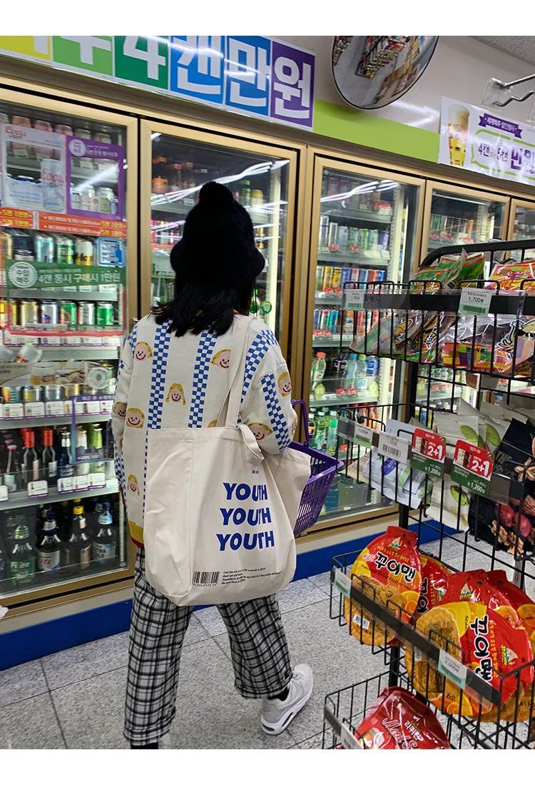Для женщин Холщовая Хозяйственная Сумка молодежная с буквенным принтом; Хлопковая ткань сумка женская эко-сумка Tote Многоразовые Бакалея сумка-шоппер сумки