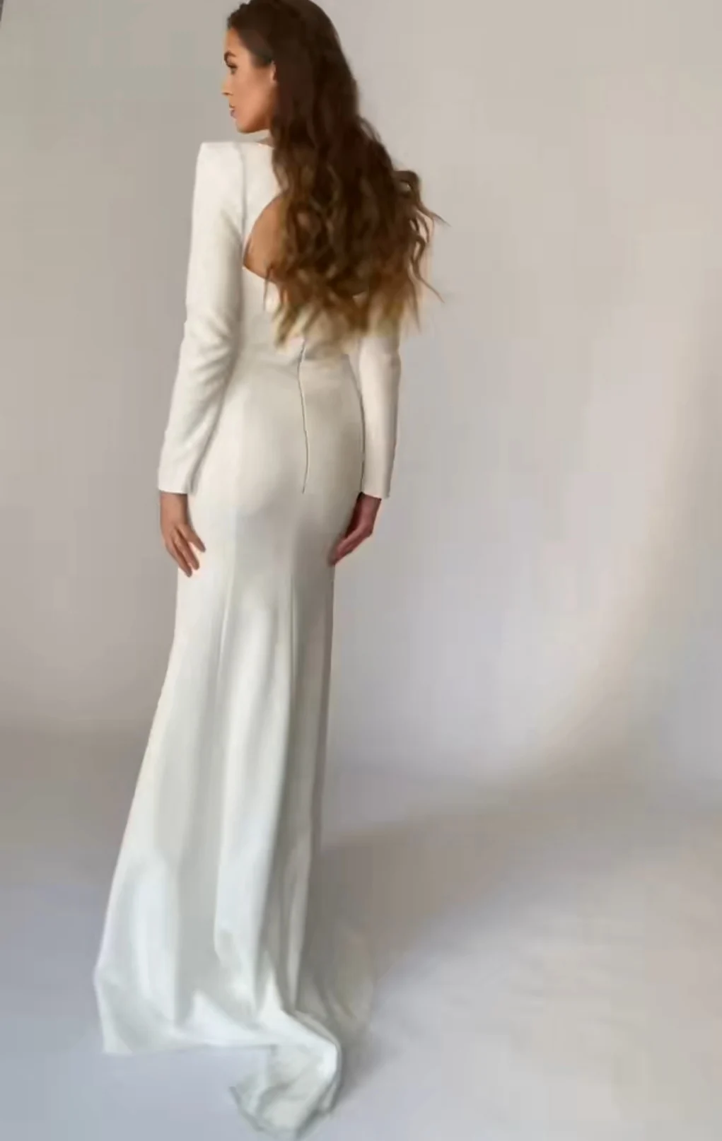 Длинное белое свадебное платье-Русалка с воротником-хомутом, соблаз...
