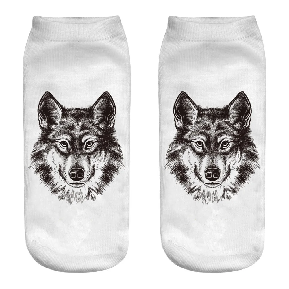 Носки женские универсальные до щиколотки, модные смешные носки с 3D принтом диких волков в стиле панк, готика, Клубные
