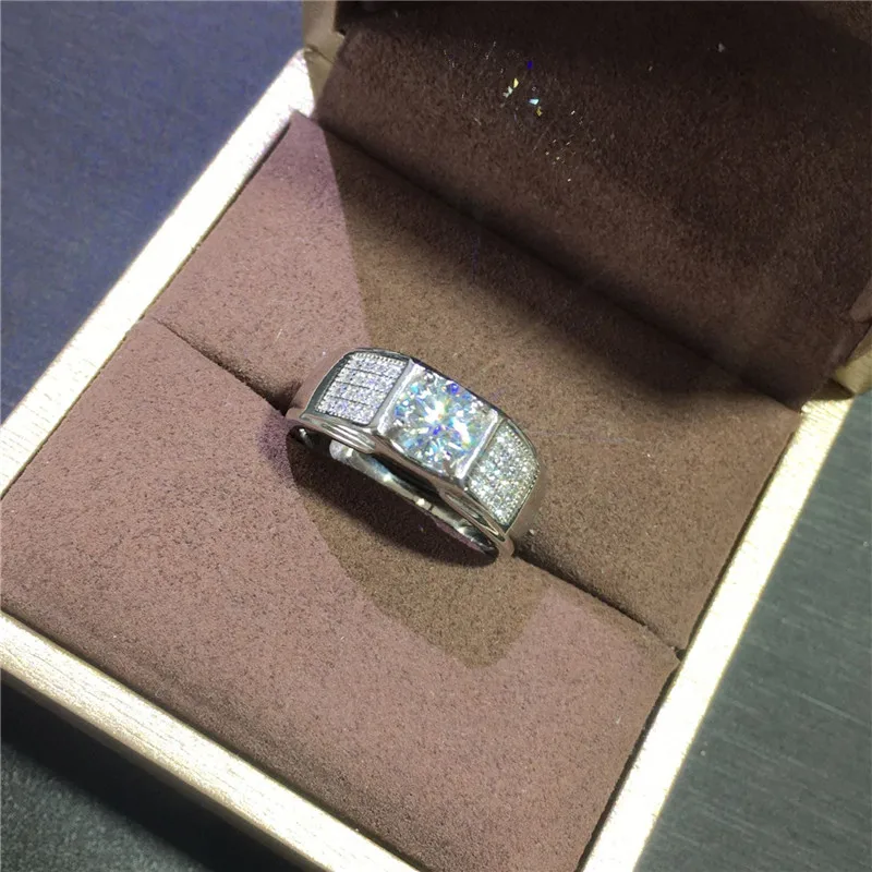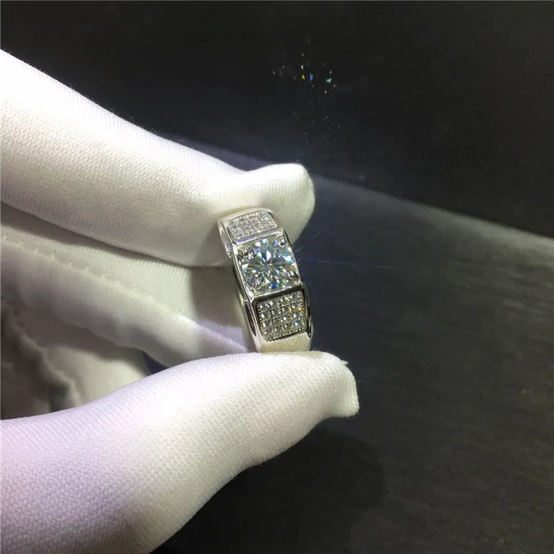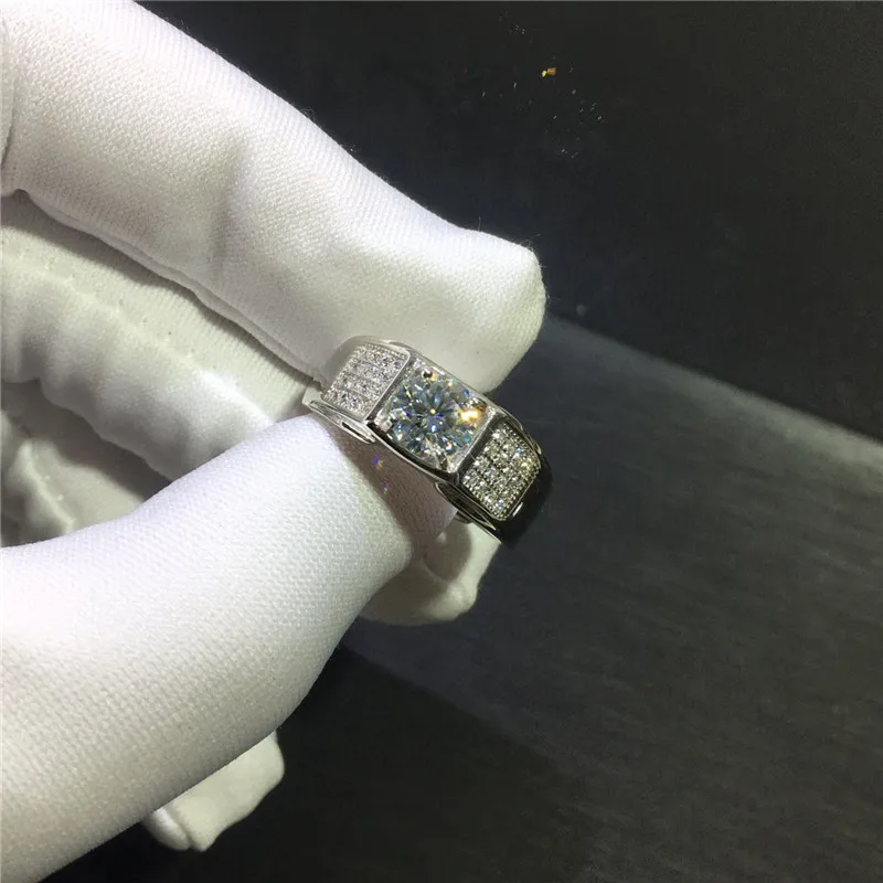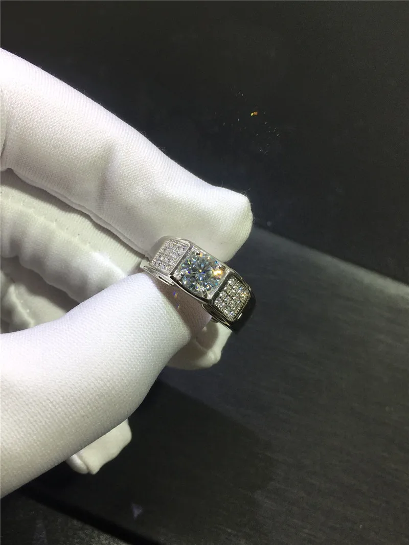 Для Мужчин's серебристый 1 карат отличный крой D Цвет высокой четкости со стразами Тесты прошел Муассанит кольцо
