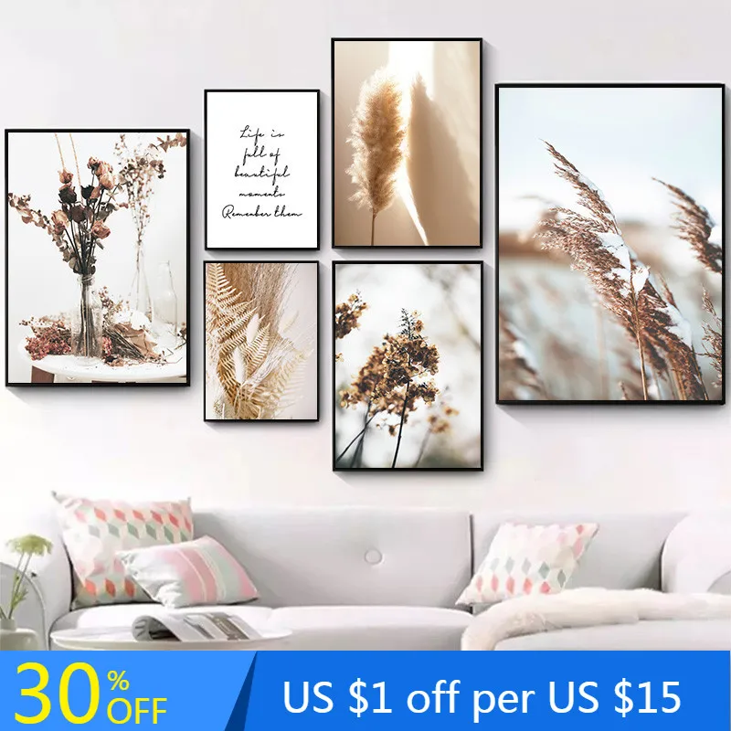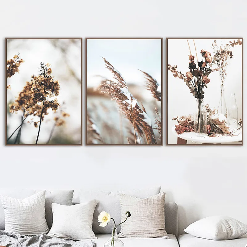 Минималистичная Настенная картина в скандинавском стиле, плакат с коричневыми высушенными цветами, рисунок бежевого цвета, художественные картины для гостиной, домашний декор TB45