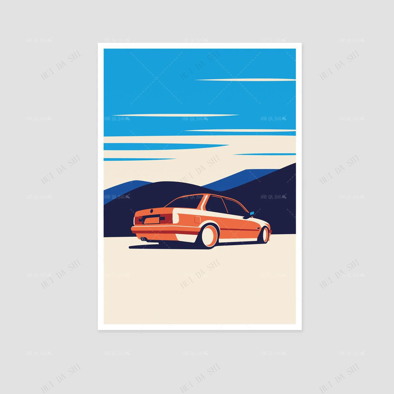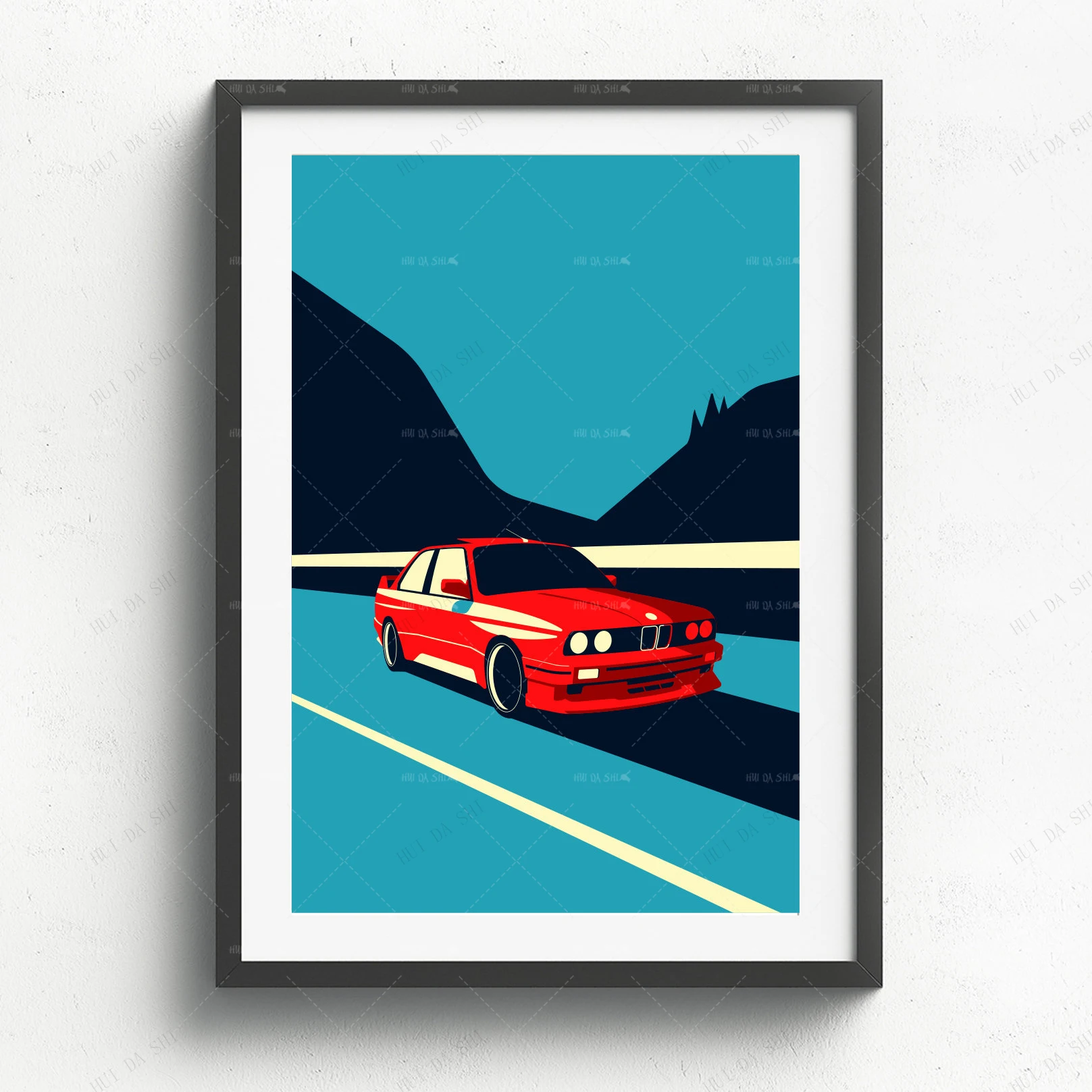 Напечатанный на естественном белом холсте BMW E28 M3 E30, подарок, автомобиль, иллюстрации, автомобильный постер, день рождения, настенная печать