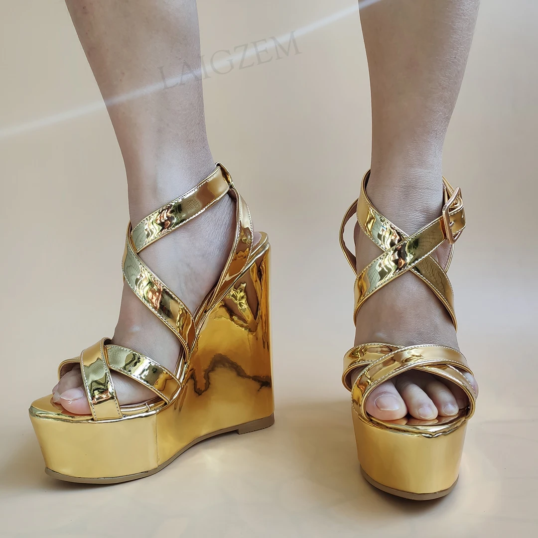 LAIGZEM супер женские сандалии на платформе; Босоножки на высокой ш...