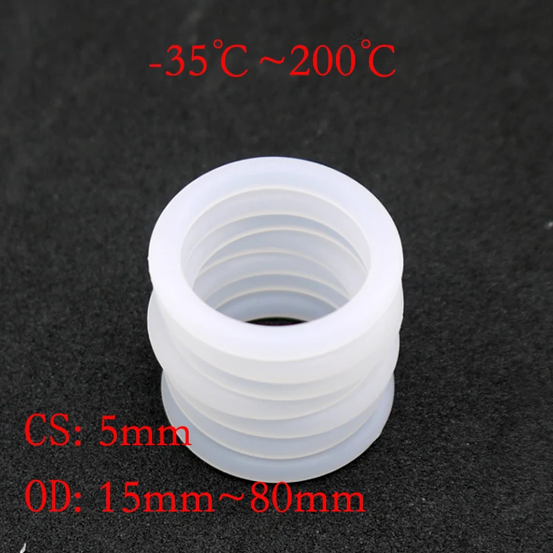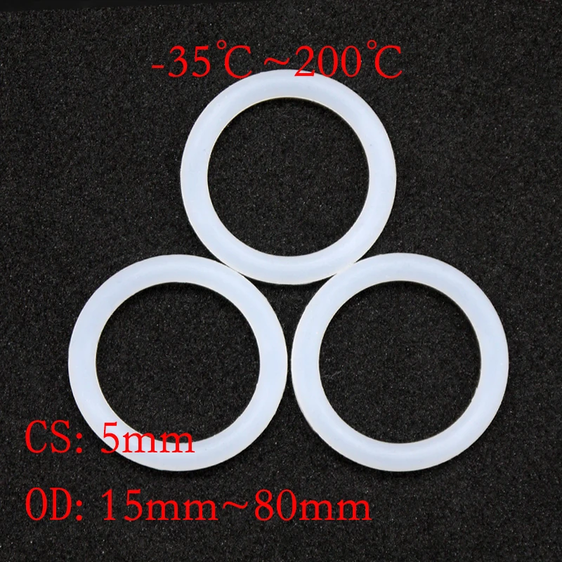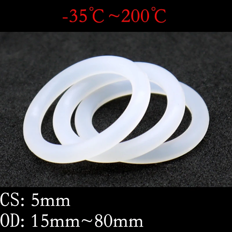 Уплотнительное кольцо VMQ, 10 шт., уплотнительная прокладка, толщина CS, 5 мм, внешний диаметр 15 80 мм, изолированная силиконовая резина, водонепроницаемая шайба круглой формы, белая Нетоксичная