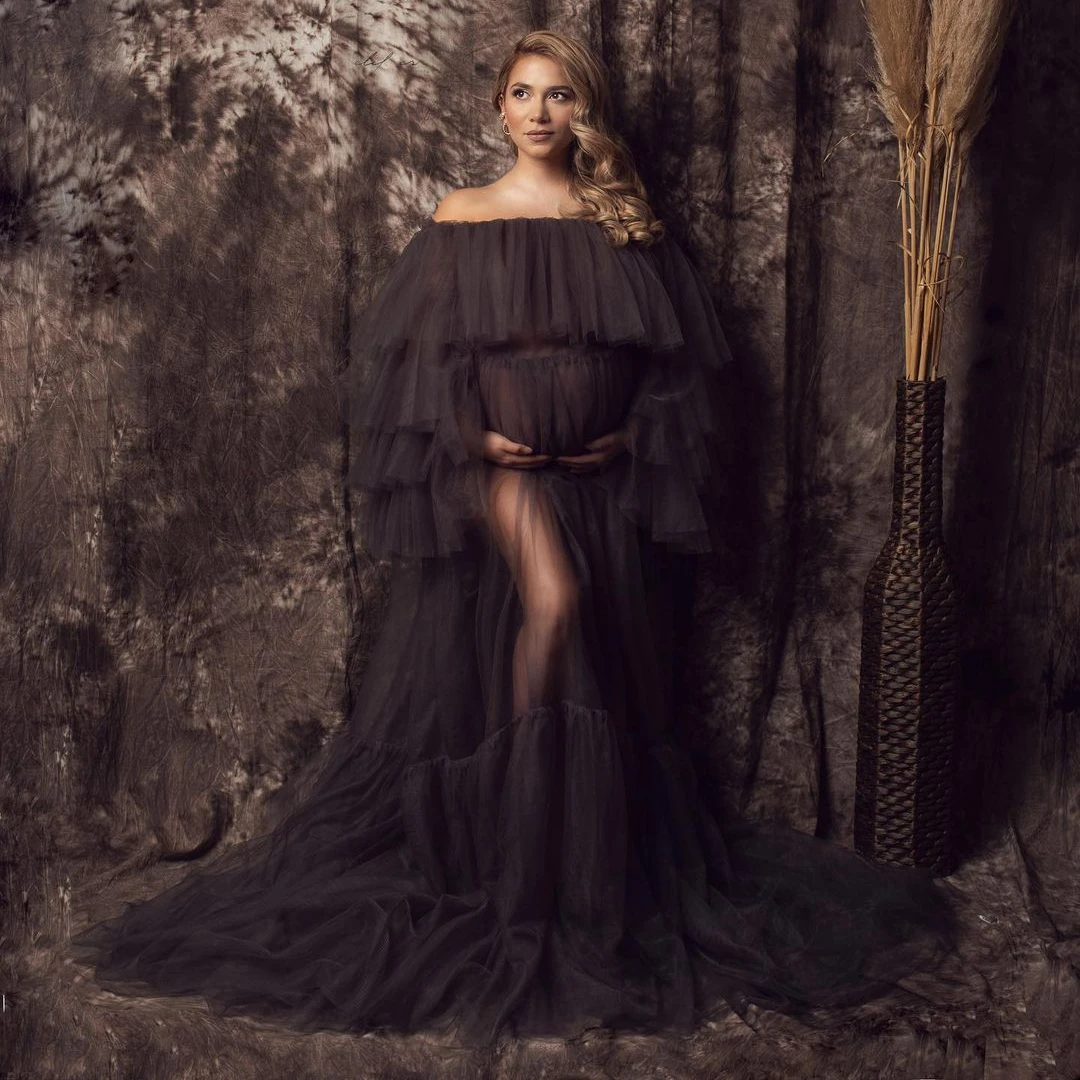 Уникальные темно-серые многоярусные тюлевые платья для беременных д...