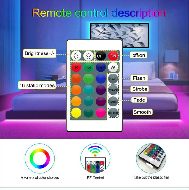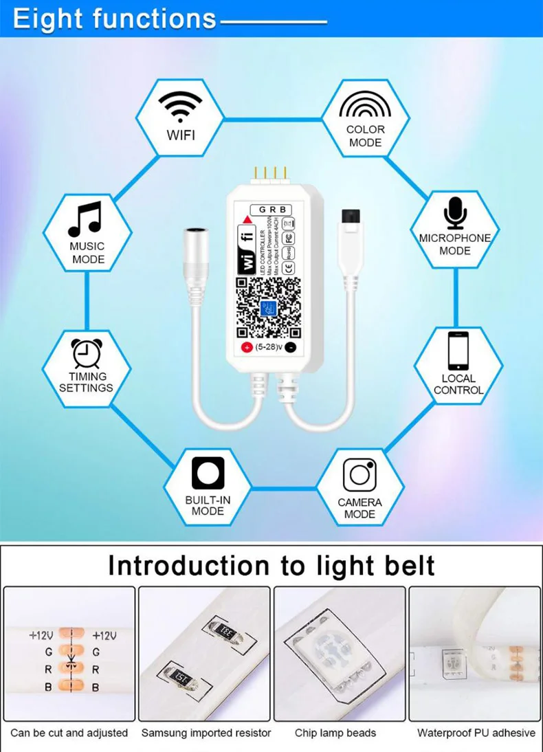 Светодиодная лента SMD28355050 с поддержкой Bluetooth, Wi-Fi, водонепроницаемая, 15 м, 5 м, 10 м, RGB Диодная, 12 В постоянного тока, гибкая лента для украшения комнаты, светодиодная лента