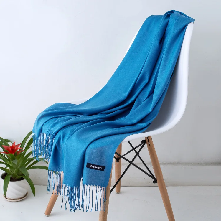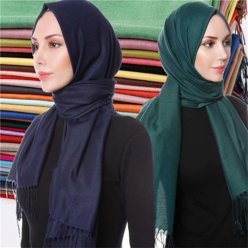 Шарфы женские тонкие, однотонный кашемировый хиджаб, Пашмина, шарф,...