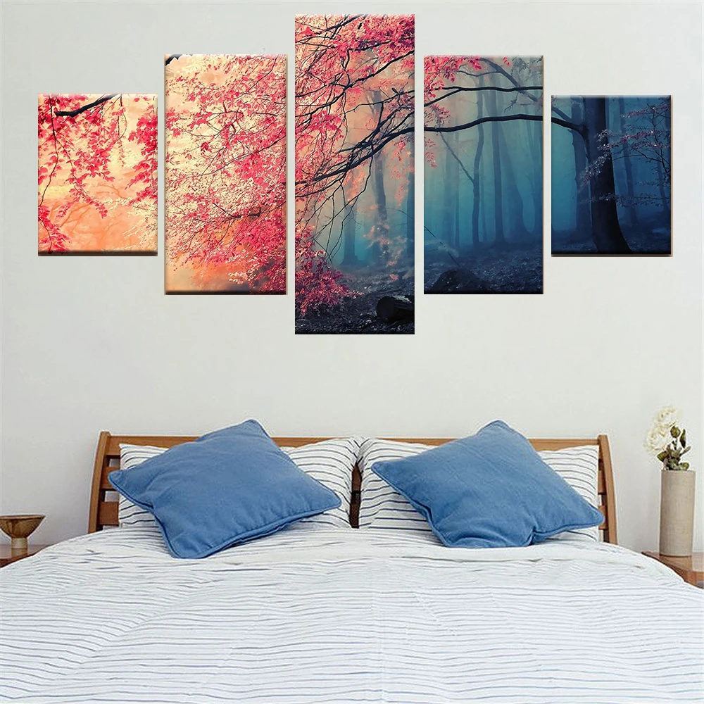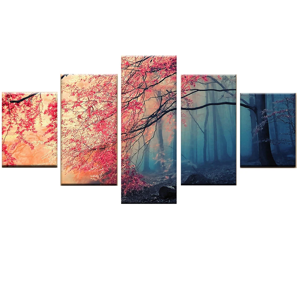 Модульная картина 5 шт. HD печатает изображение пейзажа красный лес...