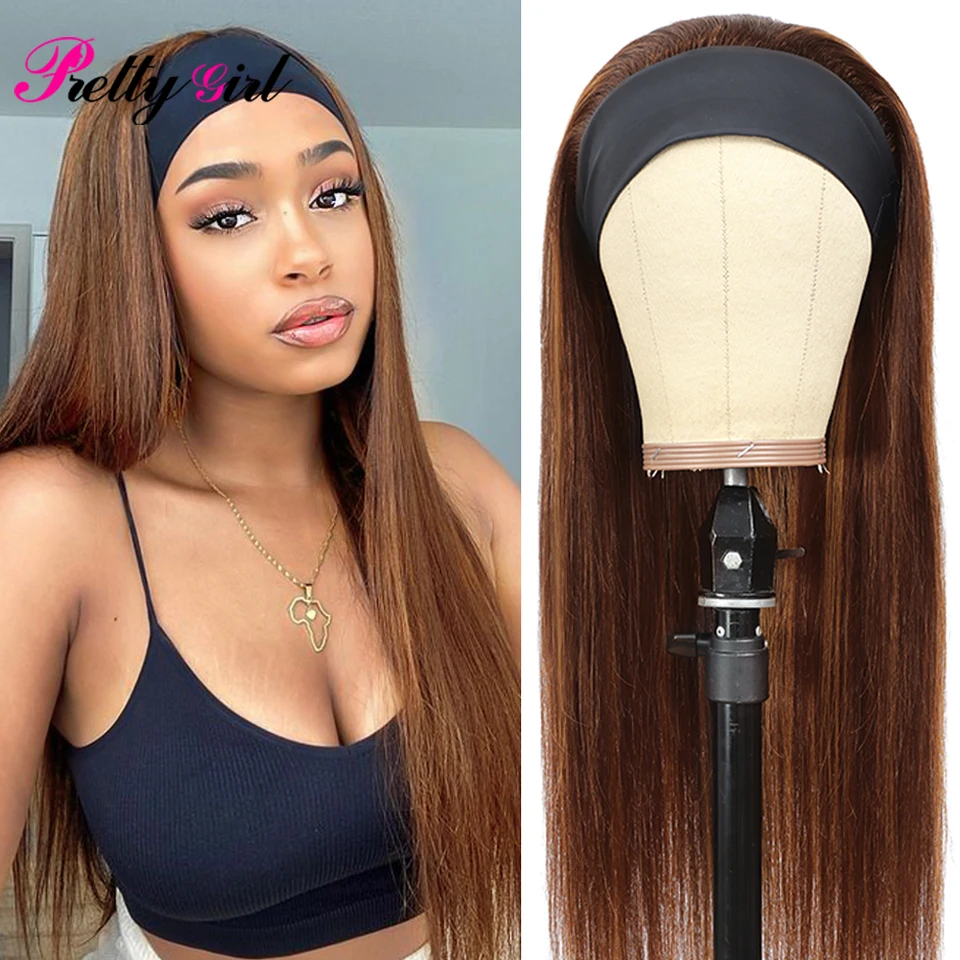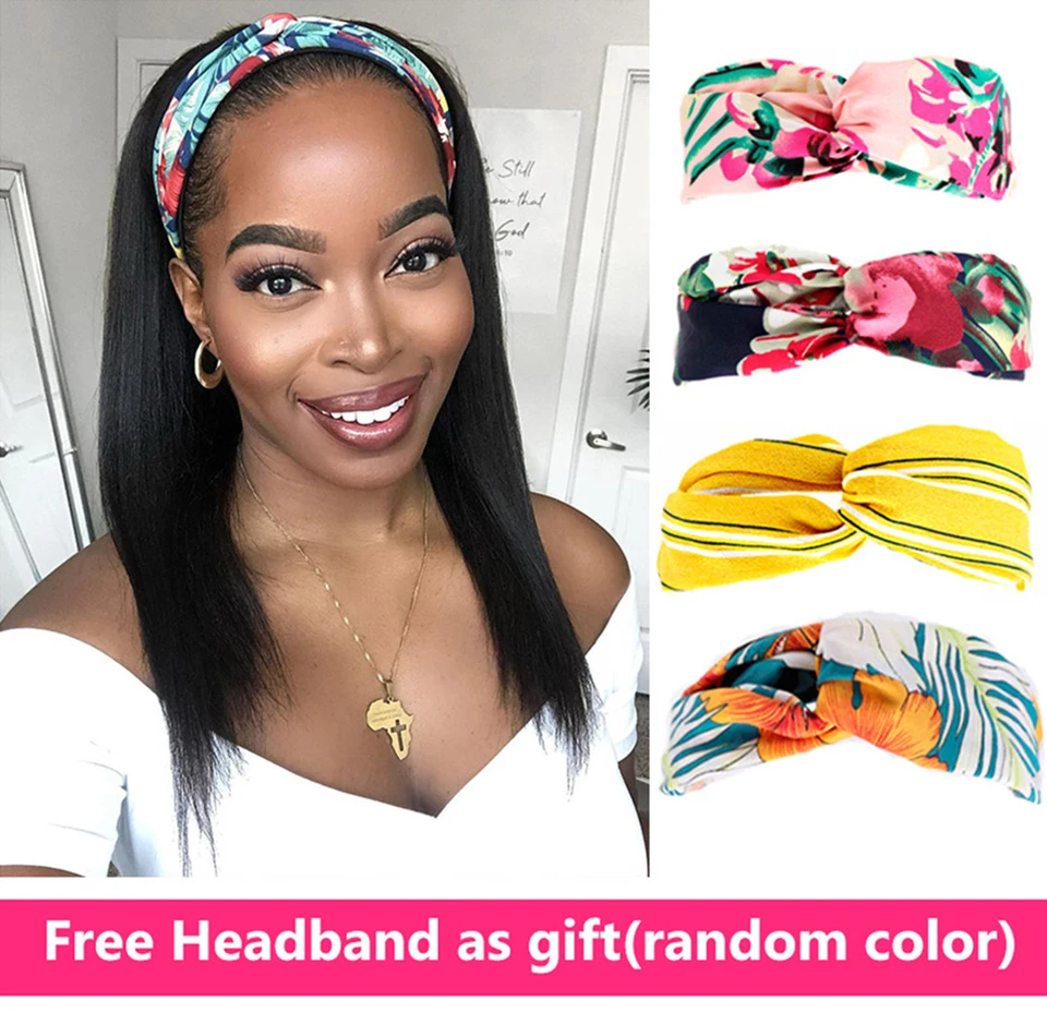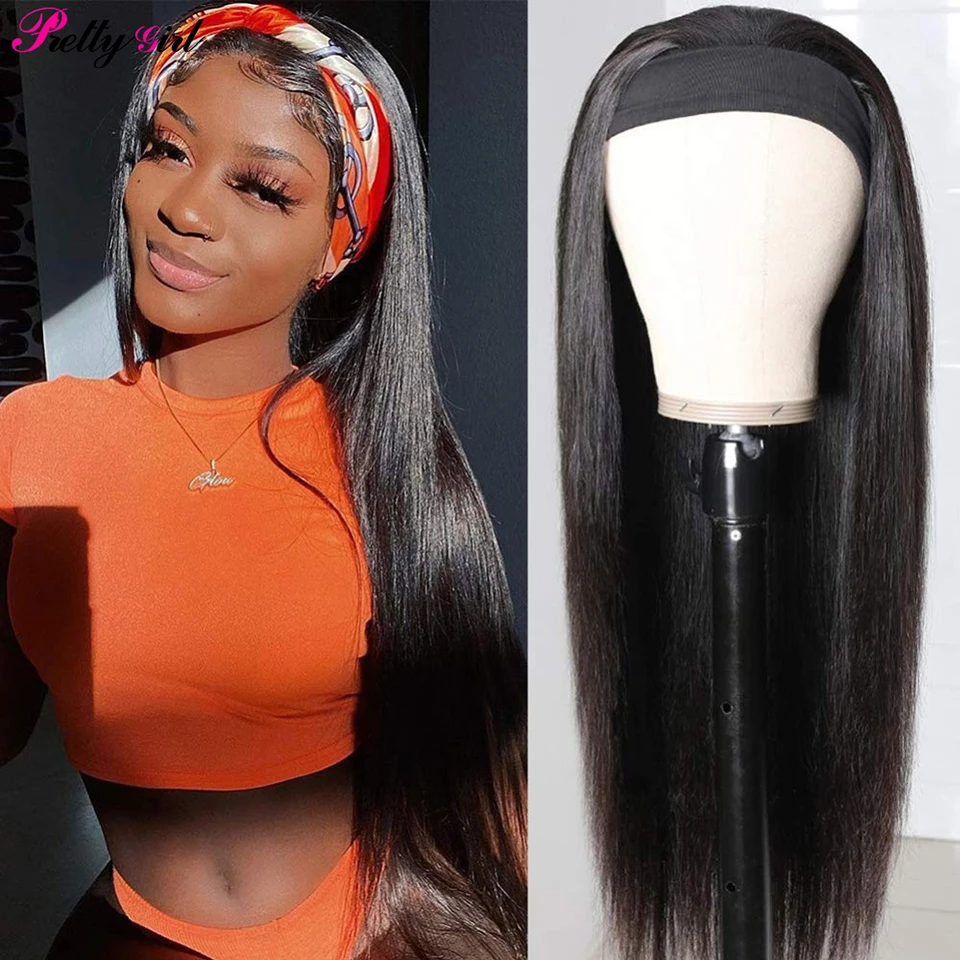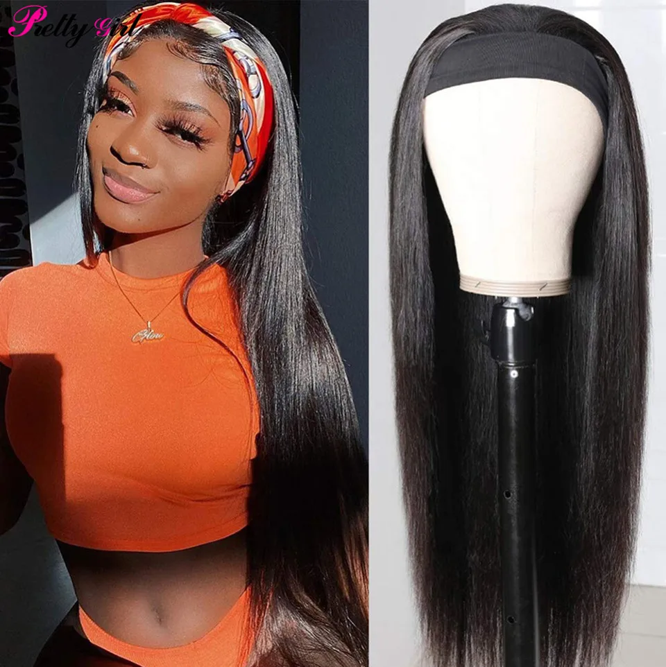 9A бесклеевой Выделите прямой парик с головной повязкой парики из натуральных волос для Для женщин бразильский парик половина полный парик фабричного производства Реми, лента для волос парик