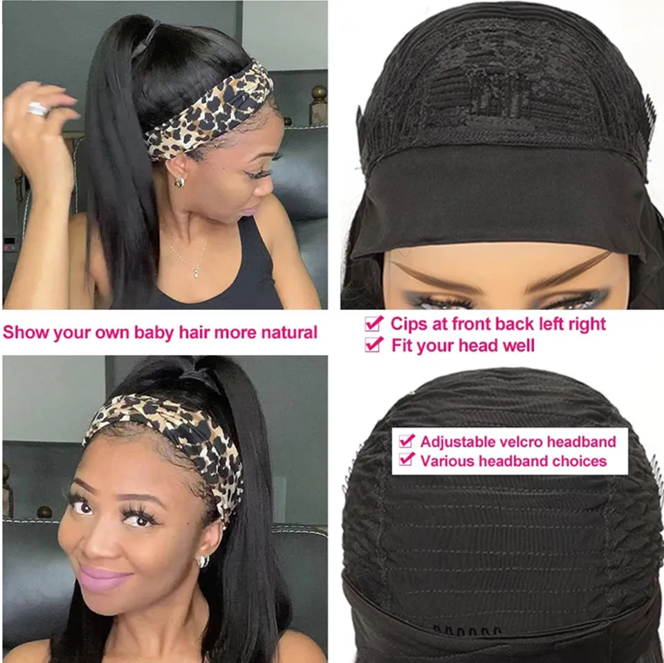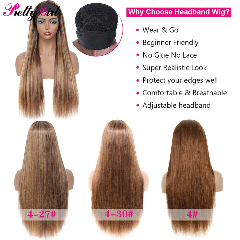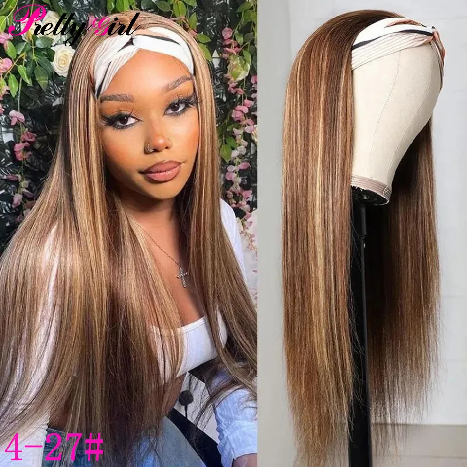 9A бесклеевой Выделите прямой парик с головной повязкой парики из натуральных волос для Для женщин бразильский парик половина полный парик фабричного производства Реми, лента для волос парик