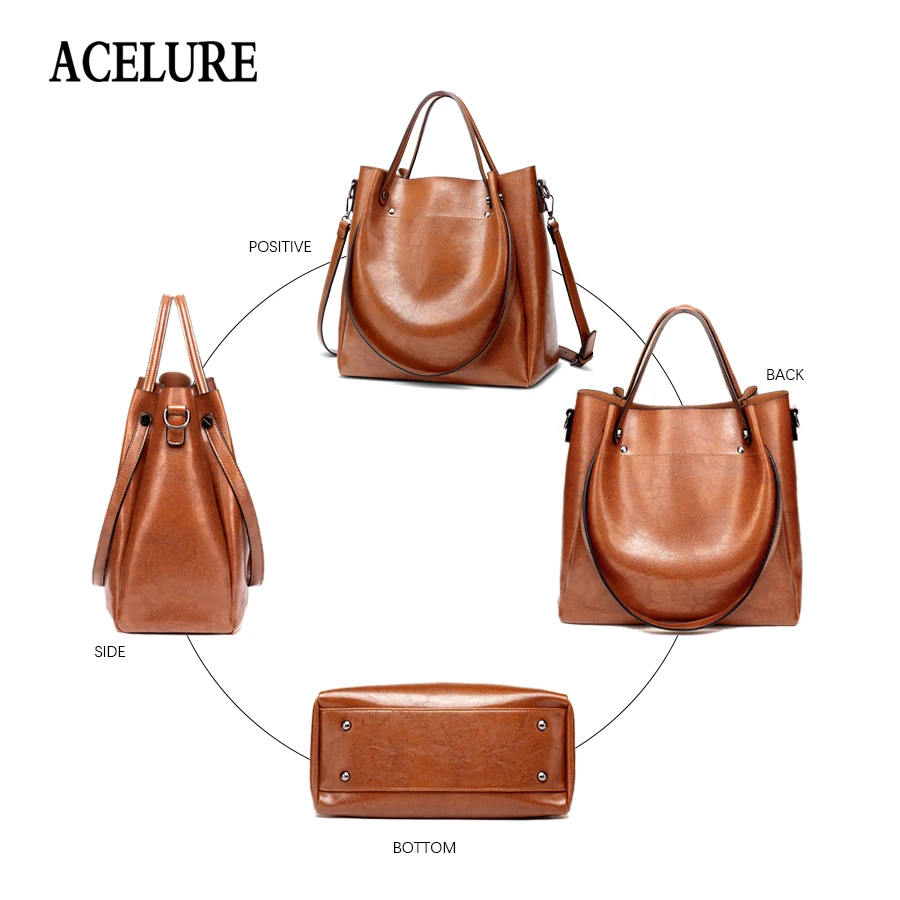 Повседневная Дамская сумочка-мешок ACELURE из искусственной кожи, мессенджер, Вместительная женская сумка-тоут на плечо, мягкая сумка через плечо для покупок