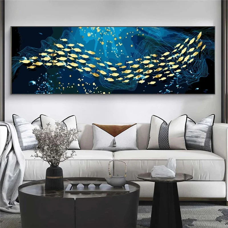 Декоративный плакат на холсте, с изображением золотой рыбы, украшение на стену, живопись маслом