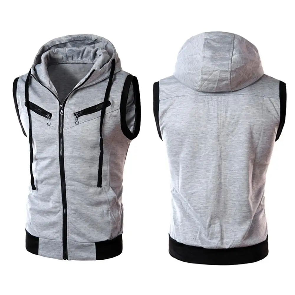 Мужская куртка на молнии без рукавов, толстовка с капюшоном для фит...