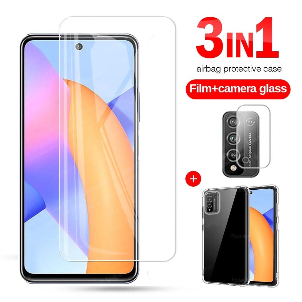 3 в 1 закаленное стекло + чехол + пленка для объектива для Huawei Honor 10x Lite чехол для Honor 30i 30s 9a 9c защитное стекло