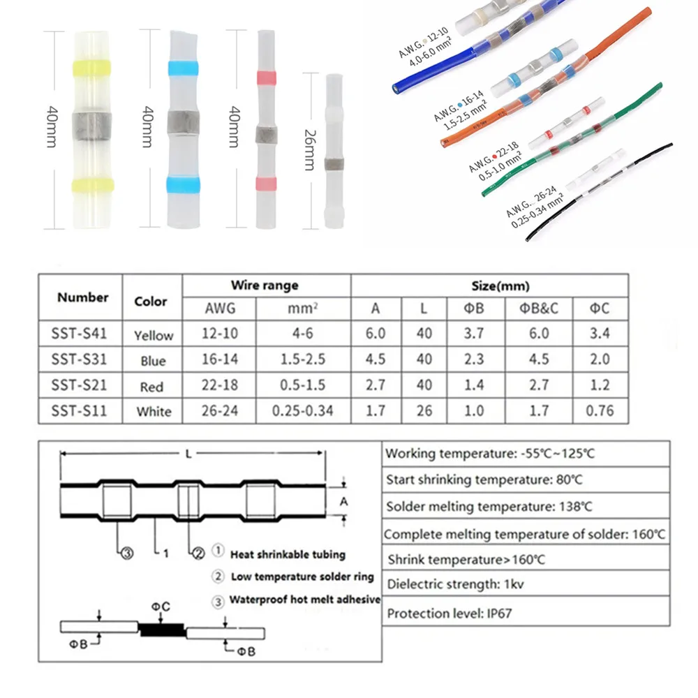 Термоусадочные соединители для проводов, водонепроницаемые, 5010020...