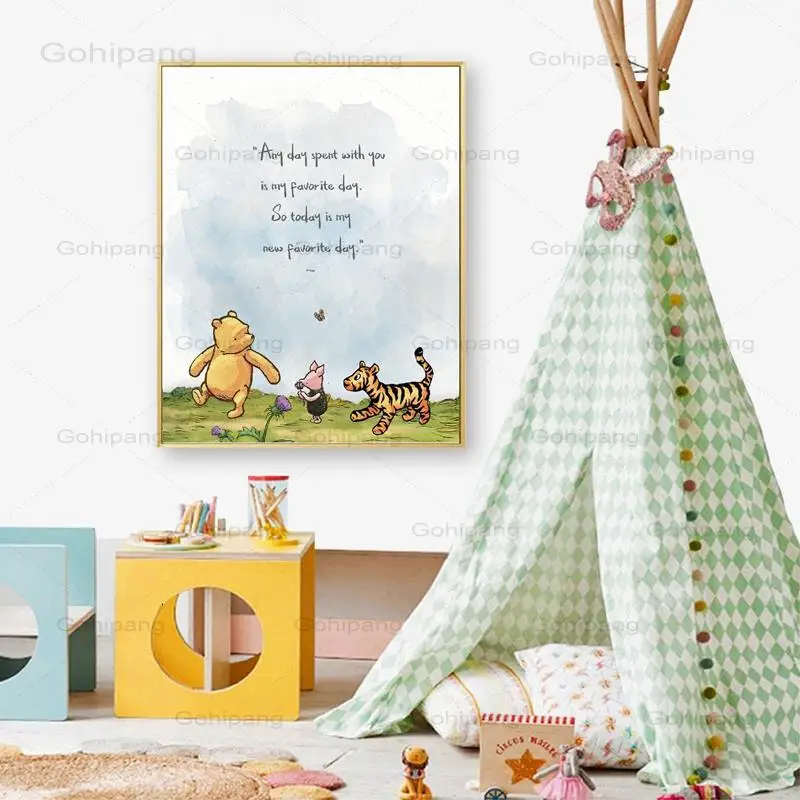 Картина на холсте, классика, Винни-Пух, цитаты, постеры и принты, Мультяшные животные, Настенная картина, подарок на день рождения, декор для детской комнаты