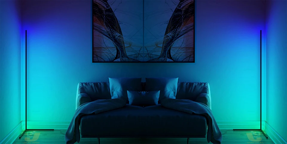 Современный светодиодный Угловой торшер RGB для спальни, прикроватной тумбочки, атмосферы гостиной, красочный домашний декор, стоячие лампы для внутреннего освещения