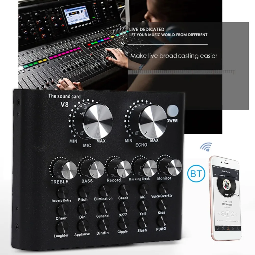 V8 звуковая карта, аудиокомплект, интерфейс, внешний Usb-микрофон в реальном времени, звуковая карта с функцией Bluetooth для компьютера, ПК