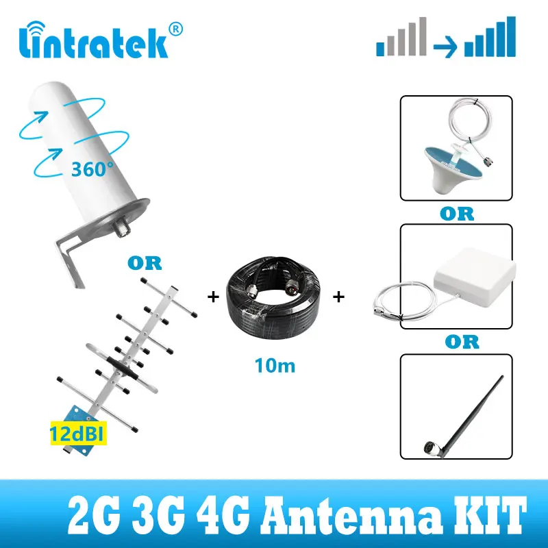 Комплект наружной и внутренней антенны lintratek 2G 3G 4G для GSM LTE 900 1800 2100 усилитель сигнала сотовой связи ретранслятор + кабель