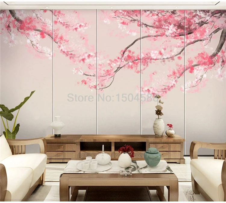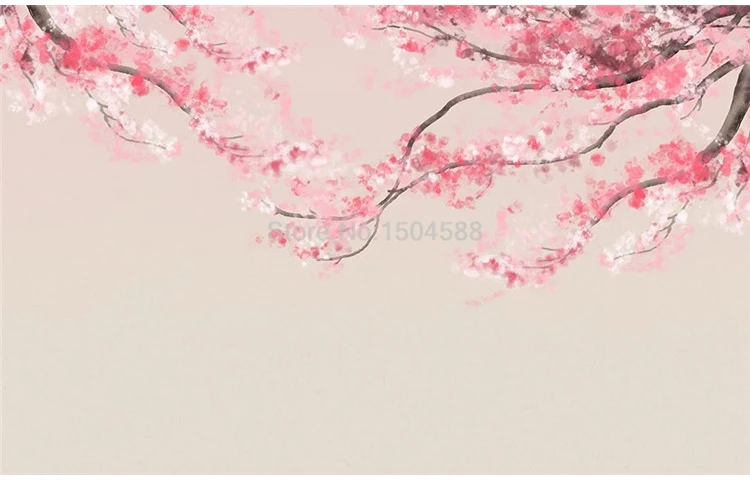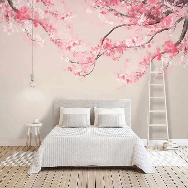 Настенные 3D-обои, ручная роспись в китайском стиле, акварель, цветущая вишня, украшение для деревьев, на заказ